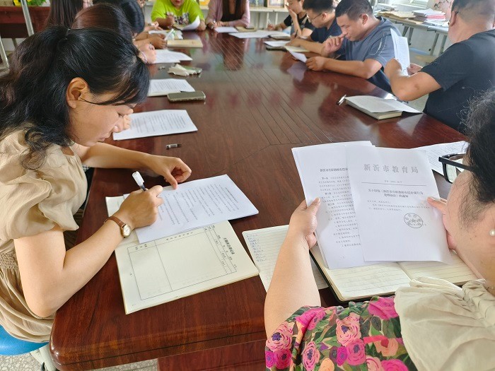 全体教师集中学习了《新沂市在职教师有偿补课行为处理办法》等文件,深刻认识到了恪守师德规范,廉洁从教,为人师表的重要性。随后,徐楠校长就《暑假在职教师有偿补课责任书》做了深入解读,告诫全体教师一定要坚决抵制有偿补课行为。全体教师在责任书上签字,郑重承诺依法执教、规范从教行为,以“四有”好教师的标准严格要求自己。教师们签下的,不仅仅是自己的名字,更是一份责任和一份承诺。